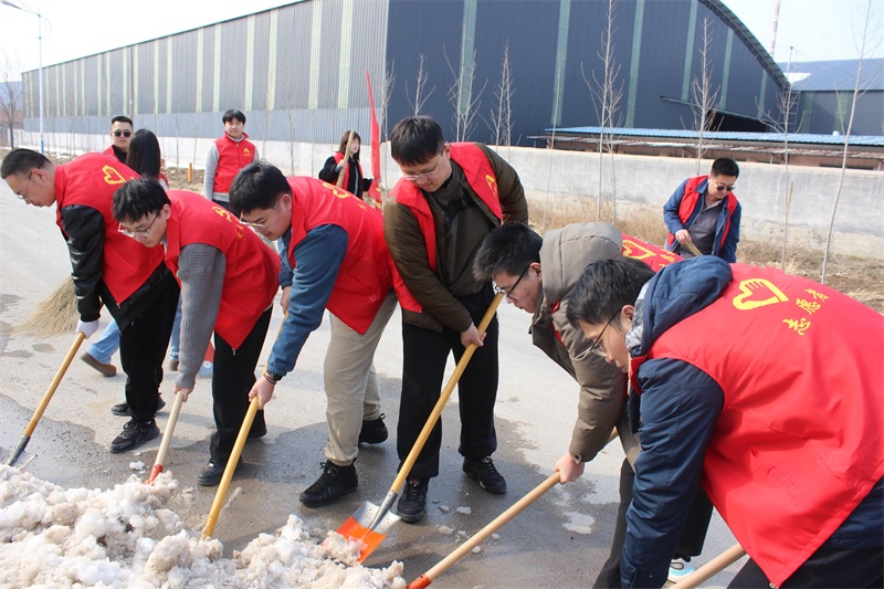下午,10余名志愿者身著統(tǒng)一服裝,手持鐵鍬、掃帚等工具,對工業(yè)區(qū)園區(qū)內(nèi)的垃圾和積雪進(jìn)行集中清掃,以實(shí)際行動(dòng)保障道路整潔、暢通,為過往司乘人員及周邊群眾安全出行保駕護(hù)航。